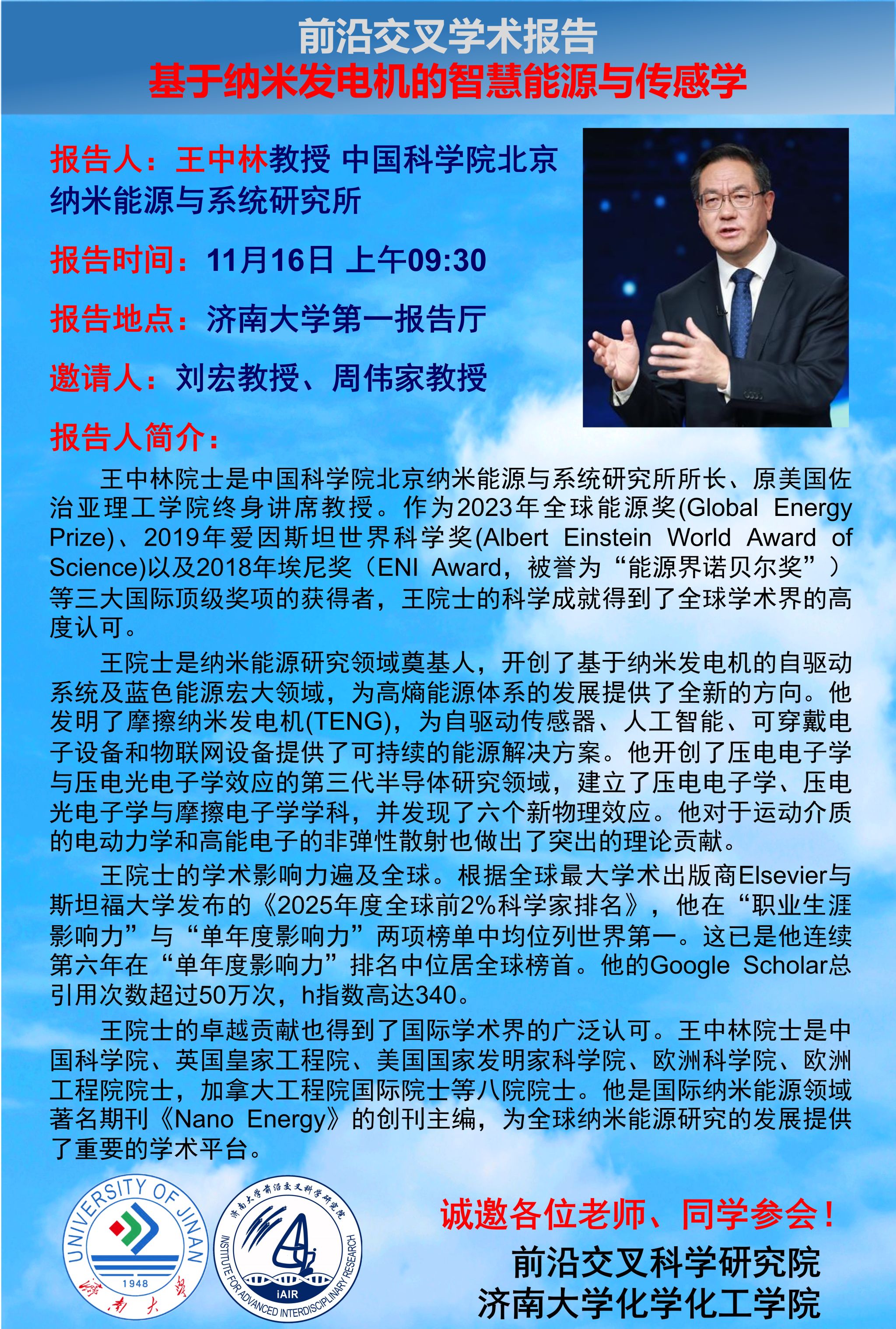 前沿交叉學(xué)術(shù)報(bào)告 | 基于納米發(fā)電機(jī)的智慧能源與傳感學(xué)