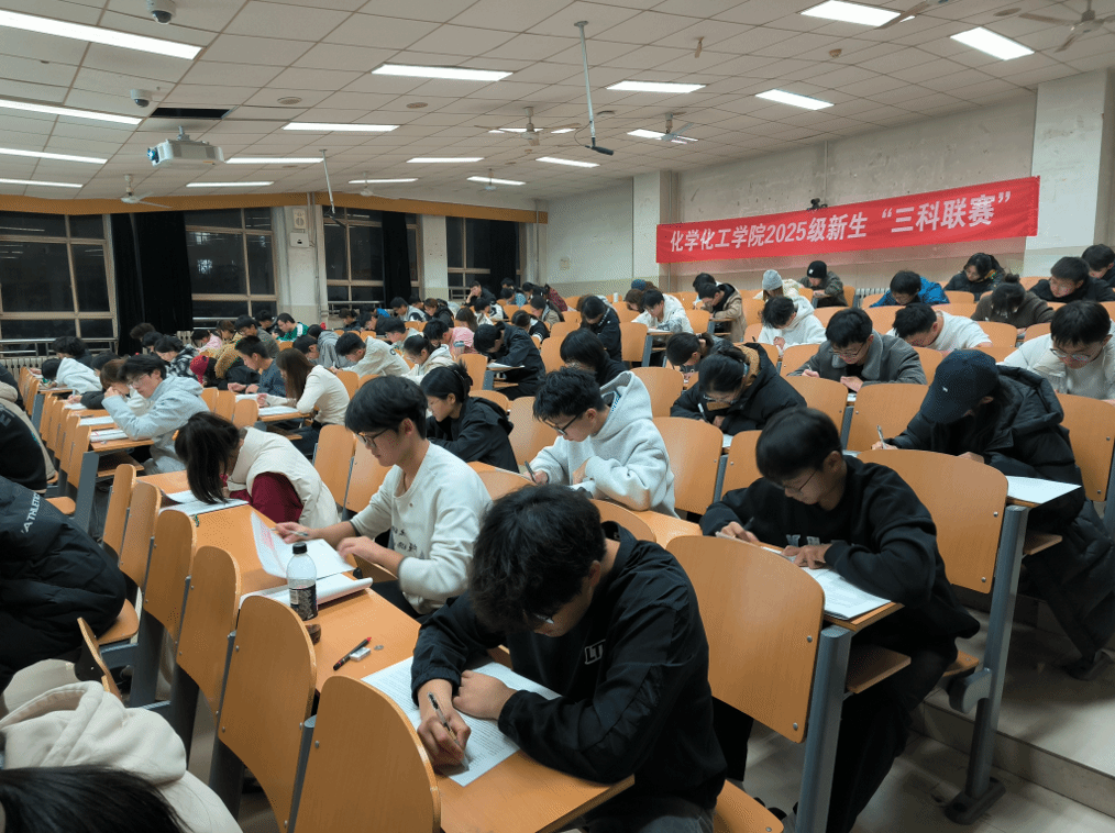 學(xué)風是立院之本,考試是治學(xué)之鏡。11月23日,化學(xué)化工學(xué)院精心組織2025級學(xué)生期中“化學(xué)專業(yè)課+高等數(shù)學(xué)+英語四級模擬”三科聯(lián)賽,部分2023級、2024級學(xué)生主動參與四六級模擬自測。