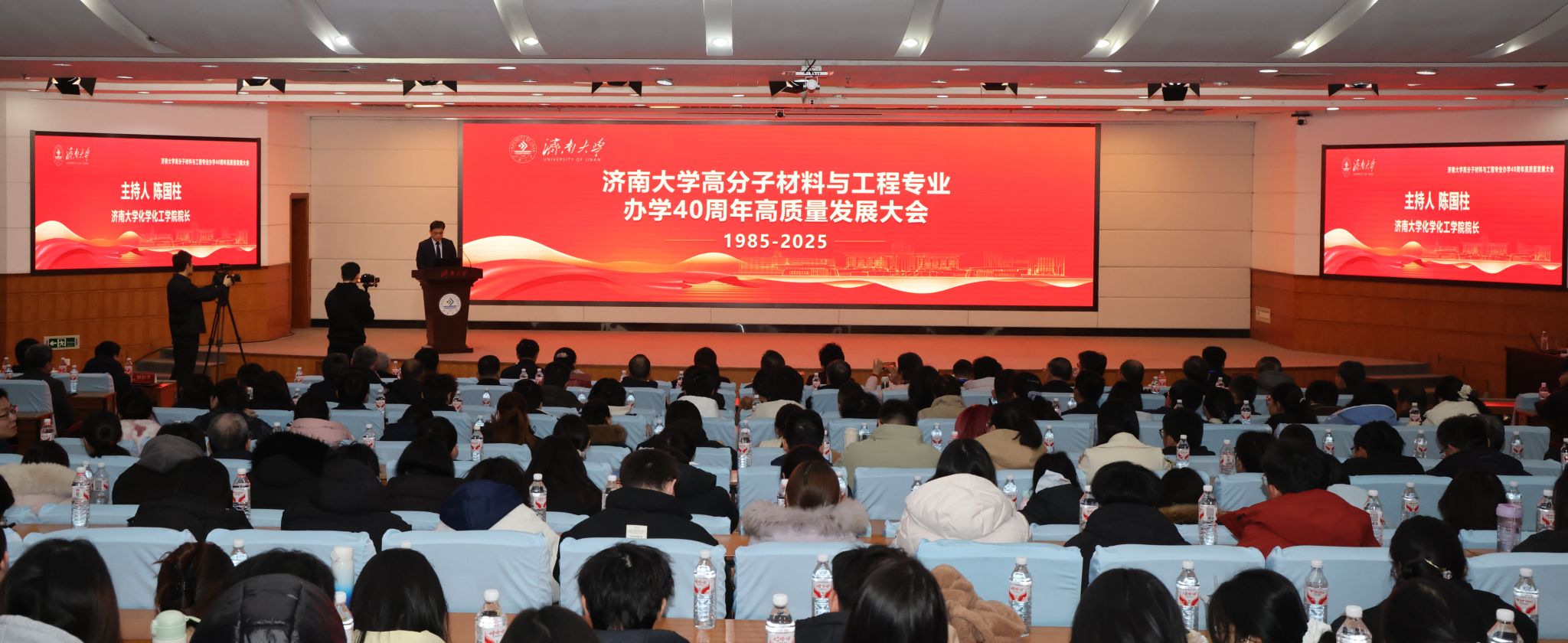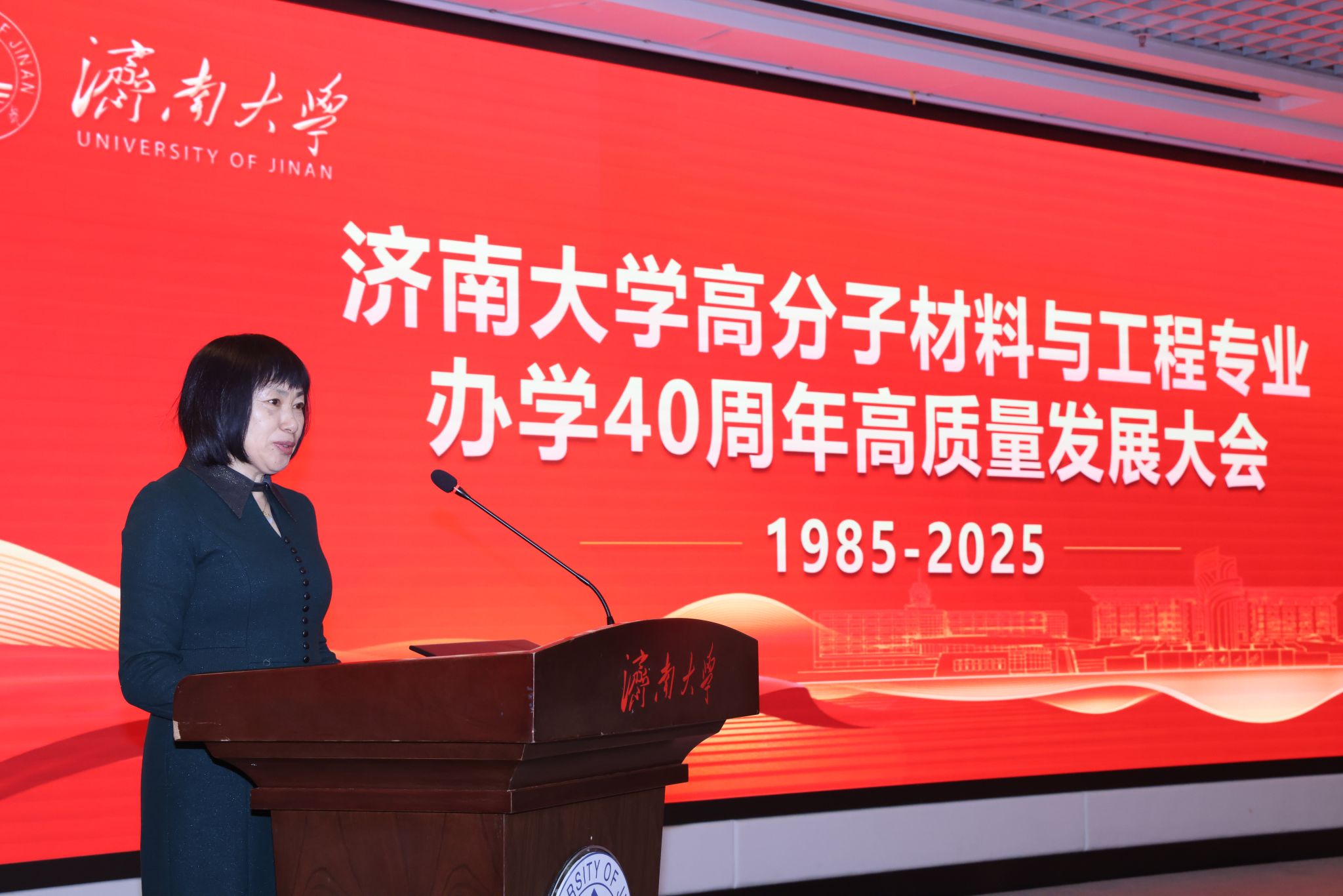 1月11日,濟(jì)南大學(xué)高分子材料與工程專業(yè)辦學(xué)40周年高質(zhì)量發(fā)展大會(huì)在第一學(xué)術(shù)報(bào)告廳舉行。中國(guó)科學(xué)院院士、東華大學(xué)教授朱美芳,中國(guó)科學(xué)院院士、浙江大學(xué)教授申有青,教育部高等學(xué)校材料類專業(yè)教學(xué)指導(dǎo)委員會(huì)秘書長(zhǎng)、哈爾濱工業(yè)大學(xué)教授耿林,山東大學(xué)材料科學(xué)與工程學(xué)院院長(zhǎng)周傳健,濟(jì)南大學(xué)黨委書記劉春華,副校長(zhǎng)徐征和,黨委常委、副校長(zhǎng)滕晉等出席大會(huì),中國(guó)兵器工業(yè)集團(tuán)、中國(guó)航空工業(yè)集團(tuán)、京博集團(tuán)、圣泉集團(tuán)、泰山體育產(chǎn)業(yè)集團(tuán)等合作單位代表受邀參會(huì),相關(guān)職能部門負(fù)責(zé)人,化學(xué)化工學(xué)院歷任黨委書記、院長(zhǎng)以及校友、師生代表一同回顧了專業(yè)四十年砥礪奮進(jìn)的辦學(xué)歷程。大會(huì)由化學(xué)化工學(xué)院院長(zhǎng)陳國(guó)柱主持。