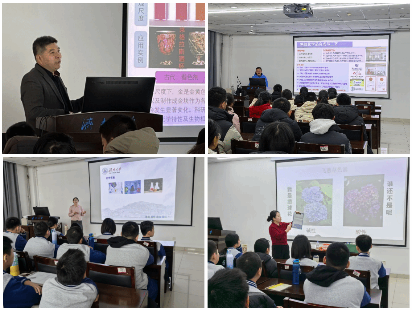 本次寒假系列科普教育社會(huì)實(shí)踐活動(dòng)以“科普講座+實(shí)踐體驗(yàn)+互動(dòng)探究”為核心,全方位構(gòu)建趣味化、立體化的科普教育場(chǎng)景。在化學(xué)前沿科普講座環(huán)節(jié),學(xué)院副院長(zhǎng)李村成、副教授孫元玲等專(zhuān)家教授結(jié)合學(xué)院科研方向與學(xué)科建設(shè)成效、化學(xué)前沿科普作品、化學(xué)與人類(lèi)健康等方面,以“衣、食、住、行”日常生活中的案例為主線(xiàn),用通俗易懂的語(yǔ)言講解化學(xué)學(xué)科的前沿進(jìn)展與應(yīng)用價(jià)值,將抽象的化學(xué)原理與日常生活、工業(yè)生產(chǎn)、醫(yī)療健康緊密結(jié)合,讓同學(xué)們深刻認(rèn)識(shí)到化學(xué)是推動(dòng)社會(huì)進(jìn)步的核心力量,點(diǎn)燃了大家探索科學(xué)未知的興趣。