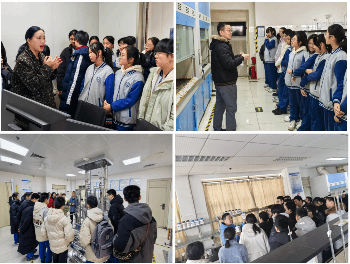 隨后同學(xué)們有序走進(jìn)科普長(zhǎng)廊,通過(guò)圖文展板、實(shí)物模型、儀器展示等形式,了解學(xué)院概況、發(fā)展歷程以及近年來(lái)在氟化工新材料、精細(xì)化學(xué)品合成、綠色催化技術(shù)、化學(xué)測(cè)量與健康等方向取得的重要科研成果。最后,姜占坤副教授、張衛(wèi)民副教授、張諾老師帶領(lǐng)同學(xué)們依次來(lái)到化學(xué)化工實(shí)驗(yàn)室、大型儀器測(cè)試平臺(tái),給同學(xué)們?cè)敿?xì)講解了各類(lèi)實(shí)驗(yàn)裝置的工作原理、化學(xué)材料的應(yīng)用場(chǎng)景,從基礎(chǔ)化學(xué)實(shí)驗(yàn)器材到高端科研儀器設(shè)備,從化工工藝到前沿納米技術(shù),同學(xué)們?cè)谥庇^感知中拓寬科學(xué)視野,感受化學(xué)學(xué)科的深厚底蘊(yùn)與創(chuàng)新活力。