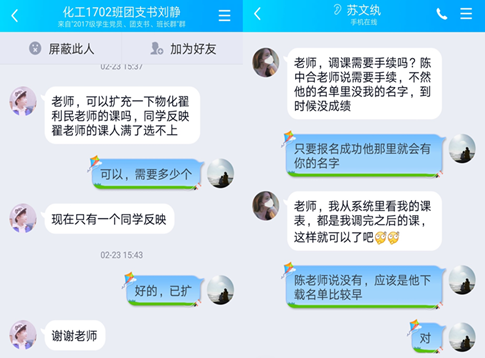1)教學(xué)辦教師全天在線,通過電話、QQ、微信等通訊手段遠(yuǎn)程指導(dǎo)學(xué)生選課,及時解決學(xué)生在選課過程中遇到的各種問題。