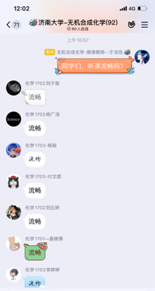 應(yīng)化系吳丹老師利用QQ群語(yǔ)音和屏幕共享的方式為學(xué)生授課,課堂上隨時(shí)可以給學(xué)生布置作業(yè)然后學(xué)生在線提交。