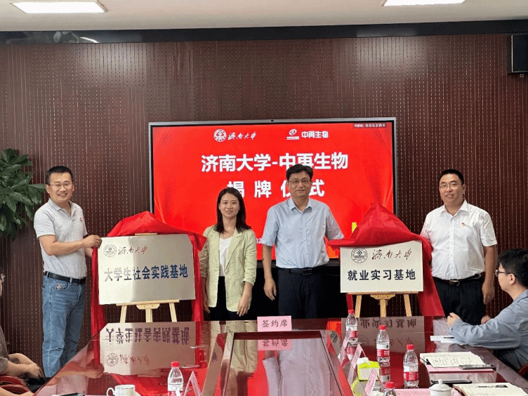 儀式上,化學(xué)化工學(xué)院黨委副書記白雪飛與中再生生物科技有限公司總經(jīng)理張玉民共同簽署就業(yè)實(shí)習(xí)基地和社會(huì)實(shí)踐基地協(xié)議。陳國柱、魏龍、白雪飛、張玉民共同為就業(yè)實(shí)習(xí)基地和社會(huì)實(shí)踐基地揭牌。