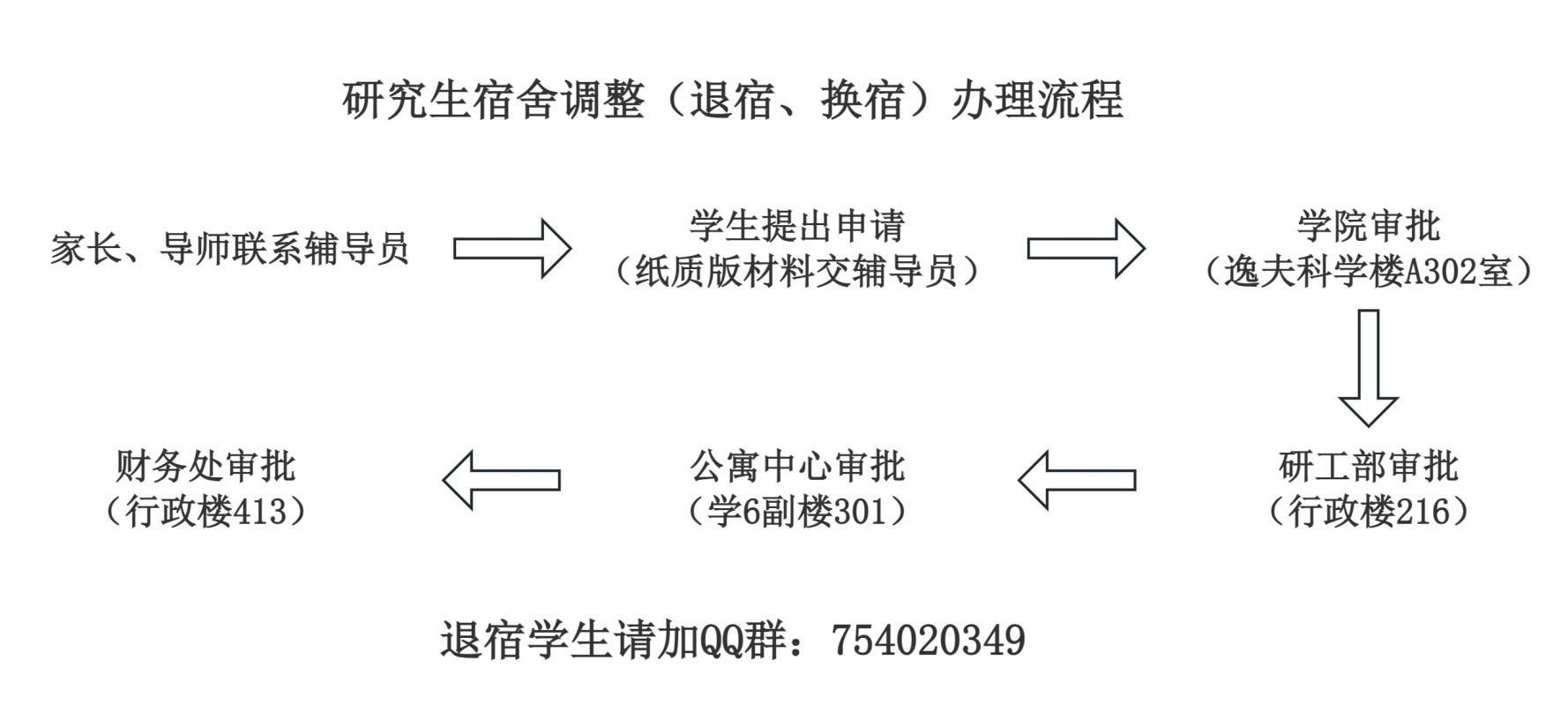 研究生宿舍調(diào)整(換宿、退宿)辦理流程: