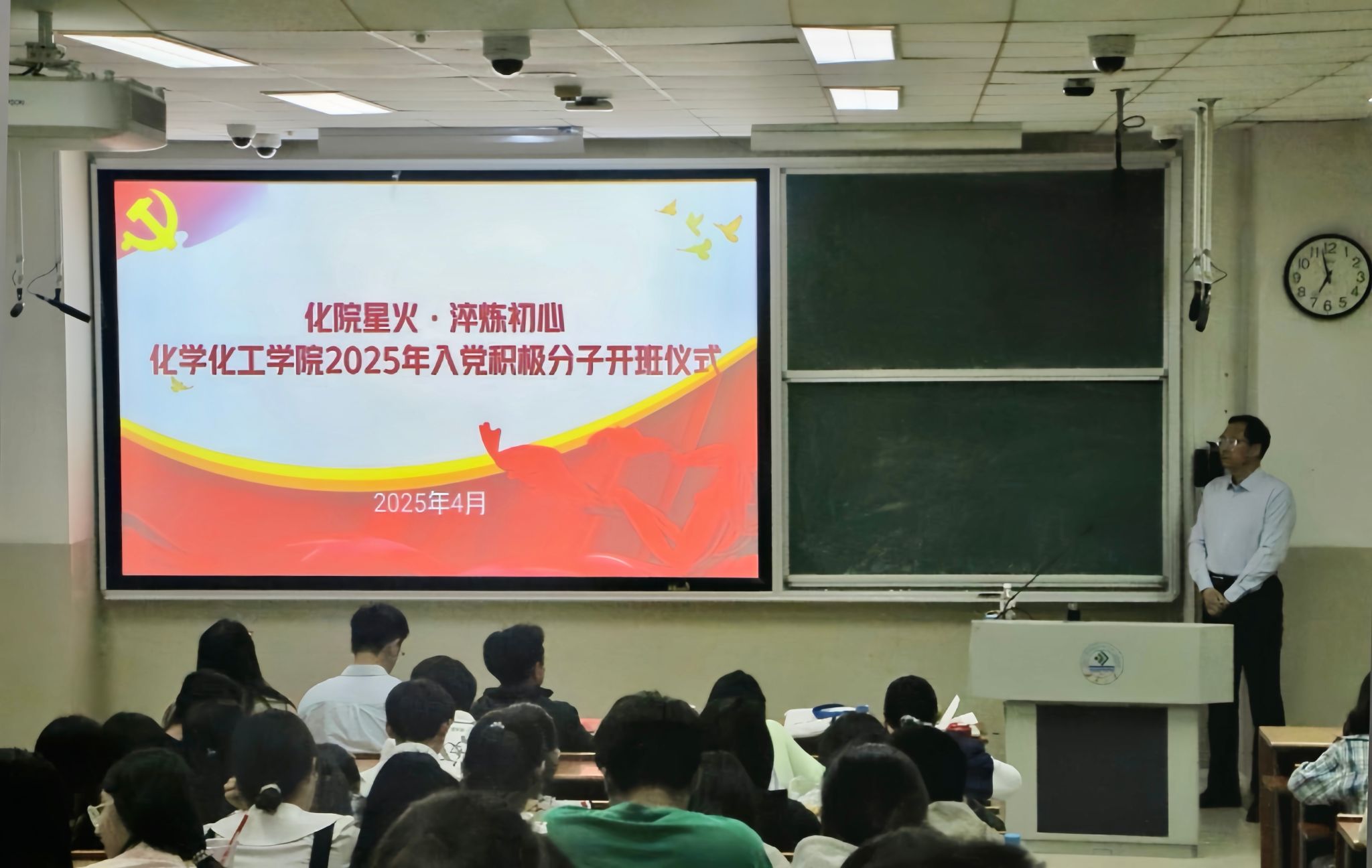 為深入貫徹落實(shí)習(xí)近平新時代中國特色社會主義思想,切實(shí)提高入黨積極分子的理論素養(yǎng)和黨性修養(yǎng),引導(dǎo)青年學(xué)生樹立規(guī)矩意識、強(qiáng)化責(zé)任擔(dān)當(dāng),4月8日,化學(xué)化工學(xué)院舉行2025年上半年入黨積極分子開班儀式。化學(xué)化工學(xué)院黨委書記賀銘為積極分子講授專題黨課。