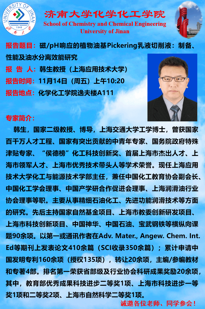 地址:山東省濟(jì)南市南辛莊西路336號(hào) 化學(xué)化工學(xué)院(逸夫科學(xué)樓)