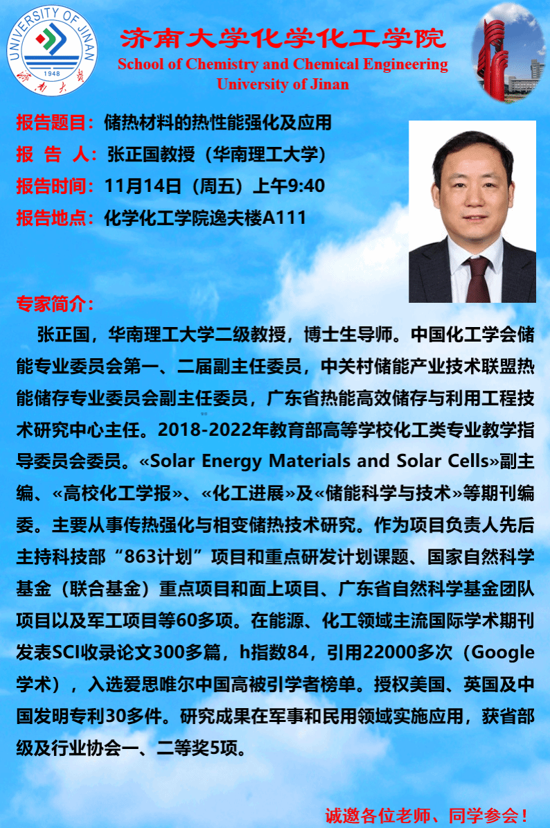 地址:山東省濟南市南辛莊西路336號 化學化工學院(逸夫科學樓)