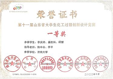 在專業(yè)課程的學(xué)習(xí)上,她根據(jù)自身研究方向的追求,有針對(duì)性的認(rèn)真研讀了相關(guān)課程,為自己的科研工作打下了扎實(shí)基礎(chǔ)。導(dǎo)師的指導(dǎo)以及與師長(zhǎng)同學(xué)間的探討交流,使得她在科研方面取得了一定的成果,先后獲得了第十四屆全國(guó)大學(xué)生數(shù)學(xué)競(jìng)賽三等獎(jiǎng)、全國(guó)化工安全設(shè)計(jì)大賽優(yōu)勝獎(jiǎng)、山東省大學(xué)生化工過(guò)程創(chuàng)新設(shè)計(jì)競(jìng)賽一等獎(jiǎng)、第十三屆山東省數(shù)學(xué)競(jìng)賽三等獎(jiǎng)、濟(jì)南大學(xué)第六屆節(jié)能減排校二等獎(jiǎng)等多項(xiàng)獎(jiǎng)項(xiàng)。