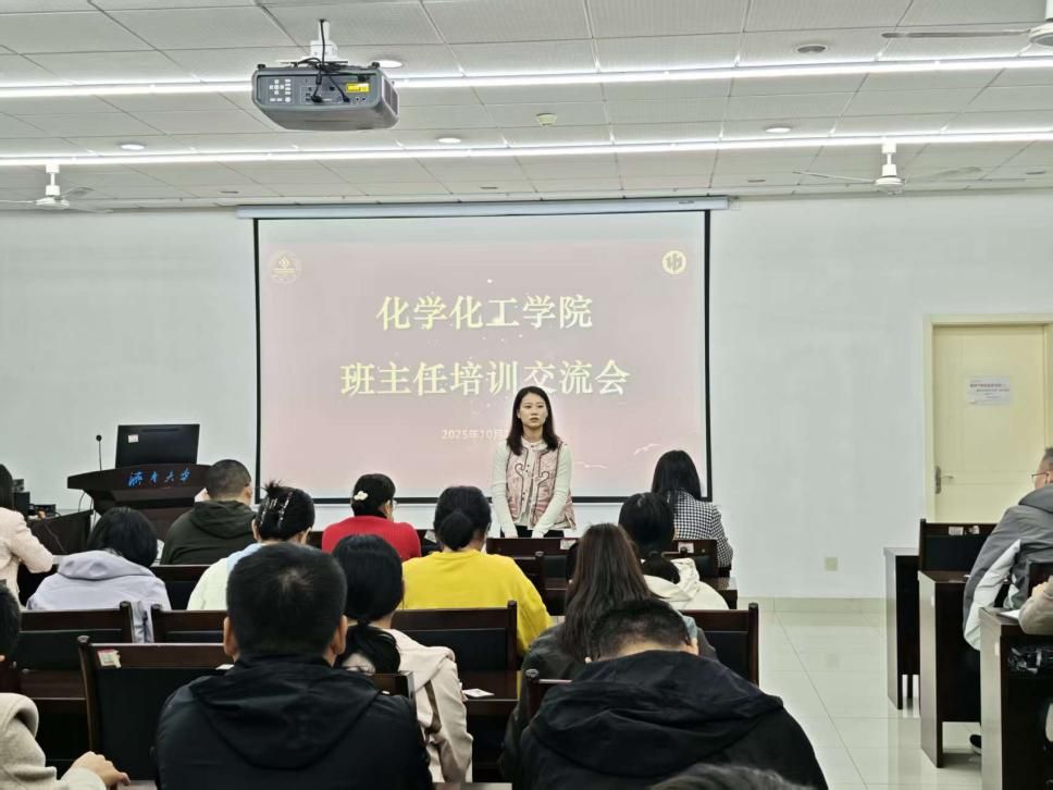 10月17日,濟(jì)南大學(xué)化學(xué)化工學(xué)院在逸夫樓A111召開班主任培訓(xùn)交流會(huì),旨在進(jìn)一步強(qiáng)化班主任在學(xué)生教育管理與育人工作中的關(guān)鍵作用,提升班主任隊(duì)伍履職能力與專業(yè)素養(yǎng)。學(xué)院黨委副書記、副院長(zhǎng)白雪飛,學(xué)校心理指導(dǎo)中心主任藺琦琦,以及2024級(jí)、2025級(jí)全體班主任、輔導(dǎo)員參會(huì)。
