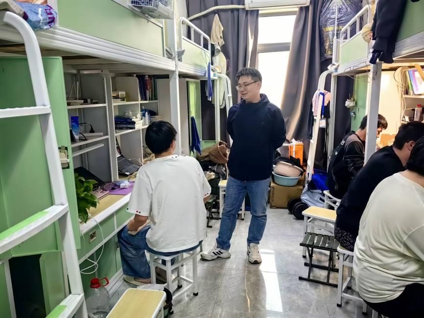 此次公寓走訪并未止步于衛(wèi)生安全檢查,更融入了“暖心談心”的育人溫度。輔導(dǎo)員們以宿舍為單位,與學(xué)生圍坐交流,詳細(xì)詢問大家近期的學(xué)習(xí)狀態(tài)、備考進(jìn)度及生活難題。針對考研學(xué)生的焦慮情緒,老師們分享時間管理技巧與心理調(diào)節(jié)方法;對于實習(xí)就業(yè)的學(xué)生,結(jié)合學(xué)院校企合作資源提供崗位信息與求職建議;面對大一新生的適應(yīng)難題,耐心解答專業(yè)學(xué)習(xí)、社團(tuán)選擇等疑問,引導(dǎo)其快速融入大學(xué)生活。