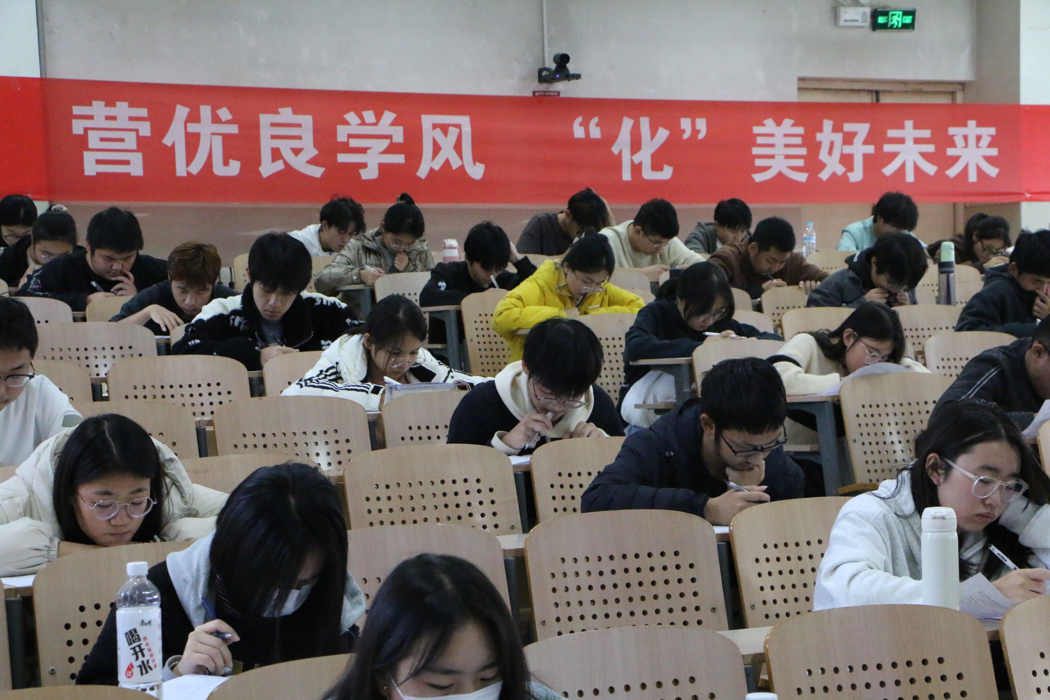 本次考試科目涵蓋高等數(shù)學(xué)、大學(xué)英語以及化學(xué)相關(guān)專業(yè)課,考試過程中,同學(xué)們展現(xiàn)出良好的紀(jì)律意識和規(guī)矩意識,積極認(rèn)真對待考試,全神貫注答題,努力發(fā)揮出自己的最佳水平。監(jiān)考人員認(rèn)真履行職責(zé),嚴(yán)格管理考試紀(jì)律,考場秩序有條不紊。