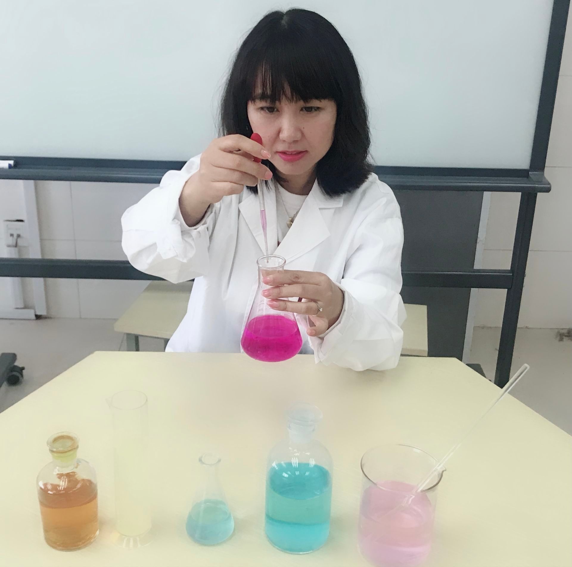 馬立霞,女,濟(jì)南大學(xué)化學(xué)教育專業(yè),2001屆畢業(yè)生,現(xiàn)任濟(jì)南新航實(shí)驗(yàn)外國語學(xué)校化學(xué)組組長。從教23年來,馬老師一直對(duì)化學(xué)教學(xué)投入極大的熱情,不斷研究,大膽嘗試,逐漸形成了她的化學(xué)教學(xué)特色:“實(shí)驗(yàn)+”教學(xué)。馬老師曾獲得山東省初中化學(xué)優(yōu)質(zhì)課比賽一等獎(jiǎng),濟(jì)南市第四期名師,濟(jì)南市首批領(lǐng)航教師,濟(jì)南市教學(xué)能手等專業(yè)榮譽(yù),并參與了《化學(xué)》教材及指導(dǎo)書的編寫和修訂工作。