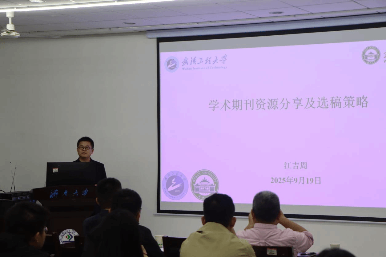 江吉周教授首先從學(xué)術(shù)期刊資源和選稿策略兩方面為學(xué)院師生做了題為“學(xué)術(shù)期刊資源分享及選稿策略”報(bào)告。他以編輯視角分享了中國(guó)科技卓越領(lǐng)軍期刊、重點(diǎn)期刊選稿策略與標(biāo)準(zhǔn)。從標(biāo)題、圖片質(zhì)量、摘要、研究?jī)?nèi)容等多維度解析了中國(guó)科技卓越領(lǐng)軍期刊、重點(diǎn)期刊的投稿和注意事項(xiàng),為學(xué)院青年教師、研究生等青年學(xué)者投稿中國(guó)科技期刊提供了有價(jià)值的參考。他鼓勵(lì)青年教師、研究生等青年學(xué)者積極參與國(guó)產(chǎn)期刊建設(shè),將更多優(yōu)秀科研成果的發(fā)表在國(guó)產(chǎn)期刊上,全面提升我國(guó)科技期刊的學(xué)術(shù)影響力與國(guó)際競(jìng)爭(zhēng)力。