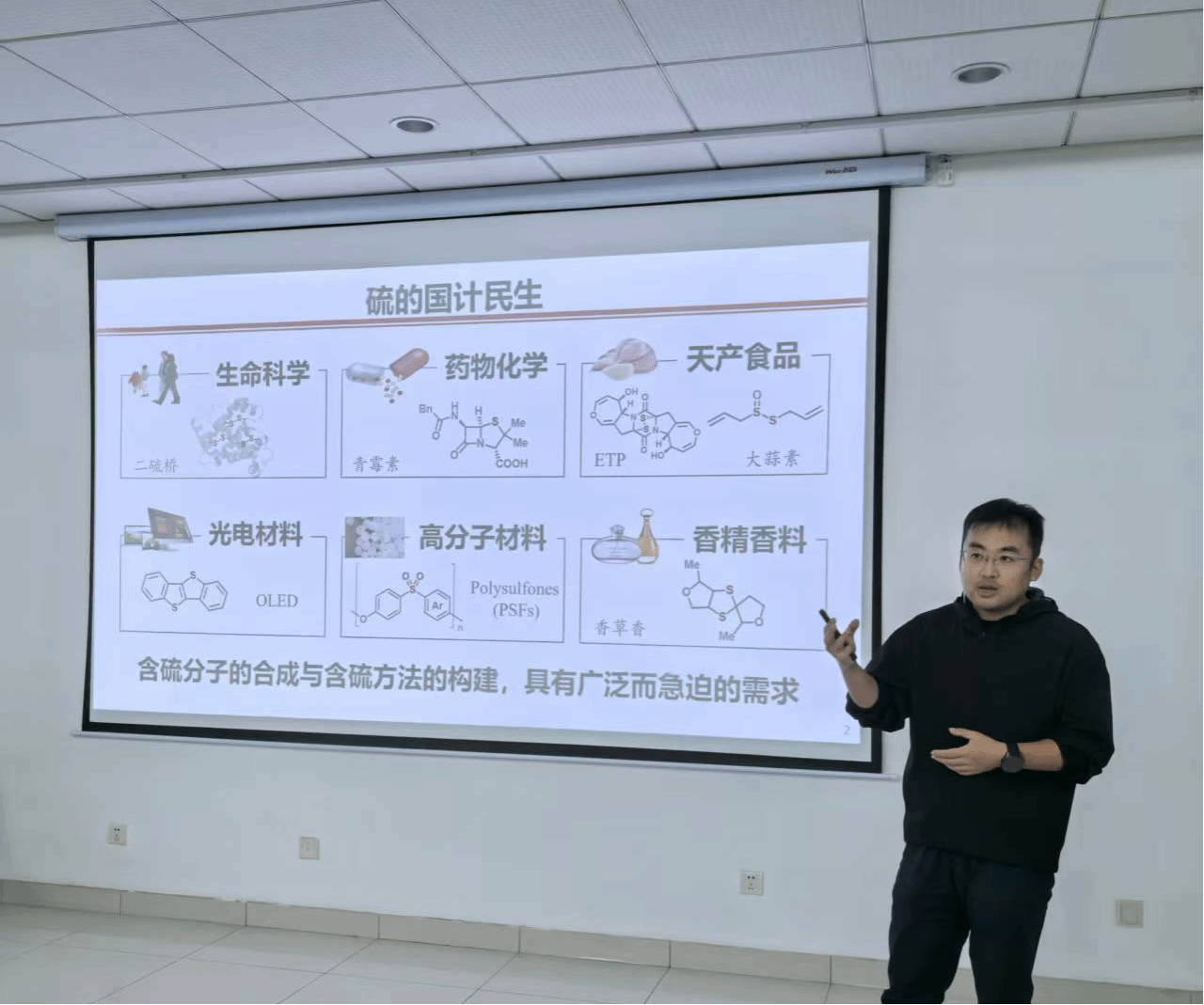 姜雪峰教授以“綠色有機硫化學(xué)”為題,圍繞“無機硫向有機硫轉(zhuǎn)化”這一核心思路,系統(tǒng)介紹了其課題組提出的“3S”綠色硫化學(xué)理念--無臭、穩(wěn)定、可持續(xù)(Smelless, Stable, Sustainable),重點講述了綠色硫化試劑的開發(fā)策略及其在硫化修飾與功能分子合成中的應(yīng)用。近年來,姜雪峰教授課題組研發(fā)了系列單硫與多硫“面具”型含硫試劑,有效解決了傳統(tǒng)有機硫化合物氣味強烈的難題;將硫化學(xué)拓展至單糖、糖苷等生命基礎(chǔ)物質(zhì)的修飾中,攻克了硫苷合成中化學(xué)選擇性的關(guān)鍵問題,實現(xiàn)了硫肽的高效構(gòu)建,設(shè)計合成了多種含硫多肽藥物、擬肽結(jié)構(gòu)及肽鏈裝訂硫試劑,為精準化學(xué)生物學(xué)工具開發(fā)提供了新路徑。