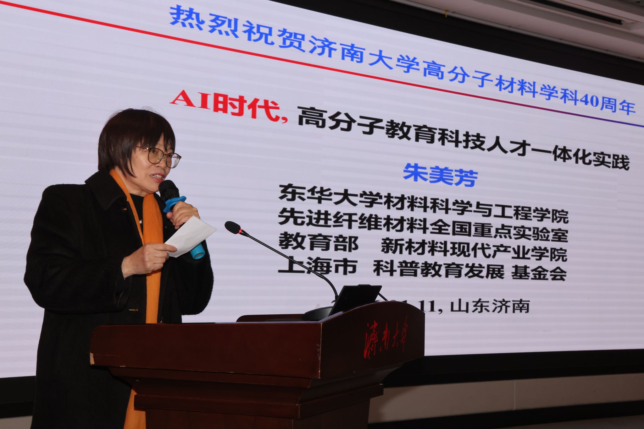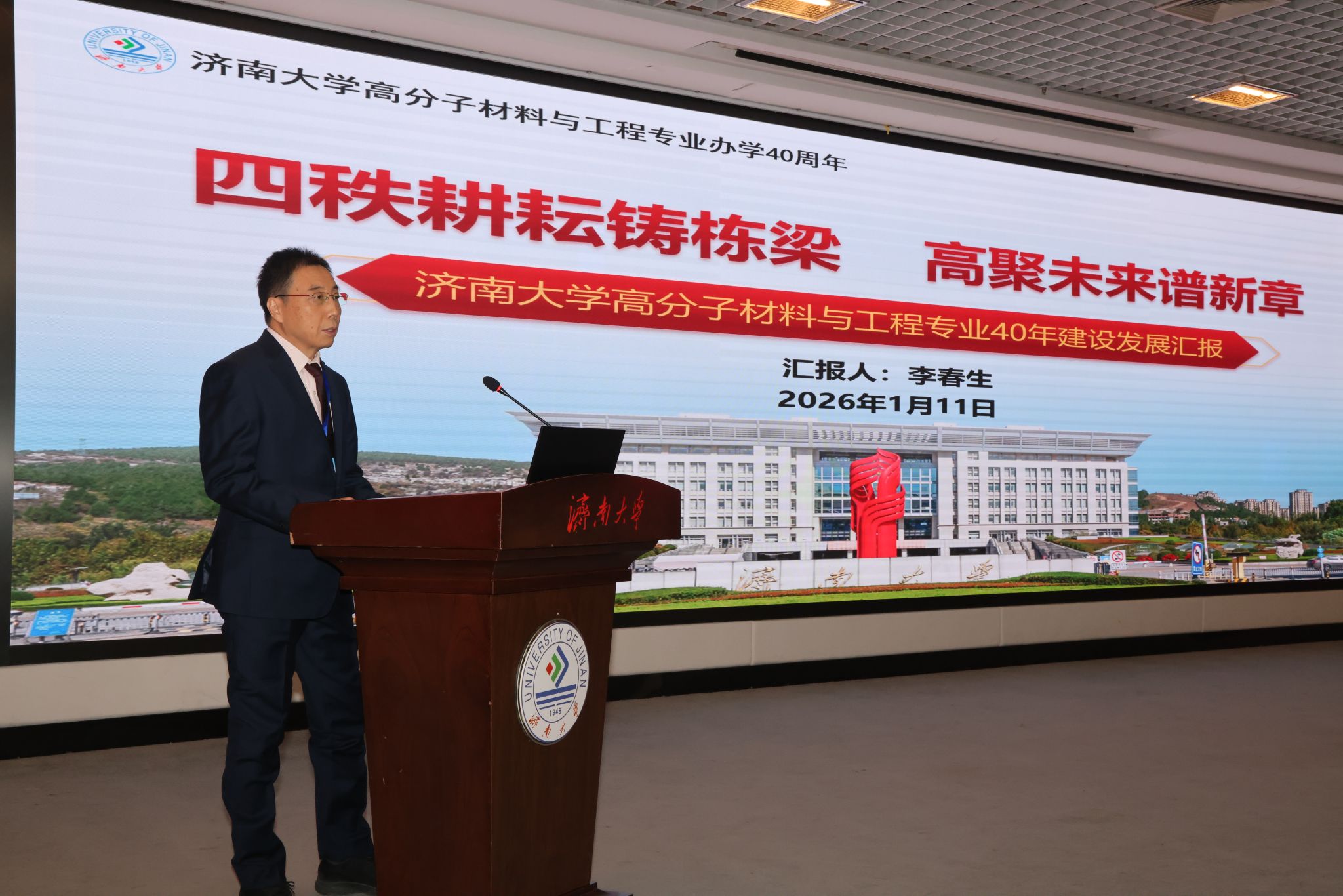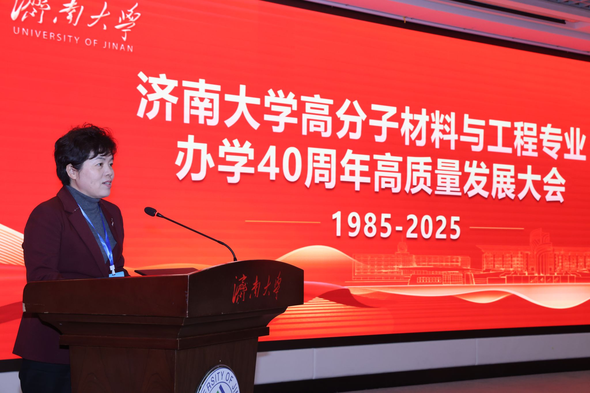 1月11日,濟(jì)南大學(xué)高分子材料與工程專業(yè)辦學(xué)40周年高質(zhì)量發(fā)展大會(huì)在第一學(xué)術(shù)報(bào)告廳舉行。中國(guó)科學(xué)院院士、東華大學(xué)教授朱美芳,中國(guó)科學(xué)院院士、浙江大學(xué)教授申有青,教育部高等學(xué)校材料類專業(yè)教學(xué)指導(dǎo)委員會(huì)秘書長(zhǎng)、哈爾濱工業(yè)大學(xué)教授耿林,山東大學(xué)材料科學(xué)與工程學(xué)院院長(zhǎng)周傳健,濟(jì)南大學(xué)黨委書記劉春華,副校長(zhǎng)徐征和,黨委常委、副校長(zhǎng)滕晉等出席大會(huì),中國(guó)兵器工業(yè)集團(tuán)、中國(guó)航空工業(yè)集團(tuán)、京博集團(tuán)、圣泉集團(tuán)、泰山體育產(chǎn)業(yè)集團(tuán)等合作單位代表受邀參會(huì),相關(guān)職能部門負(fù)責(zé)人,化學(xué)化工學(xué)院歷任黨委書記、院長(zhǎng)以及校友、師生代表一同回顧了專業(yè)四十年砥礪奮進(jìn)的辦學(xué)歷程。大會(huì)由化學(xué)化工學(xué)院院長(zhǎng)陳國(guó)柱主持。