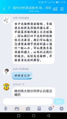 從聽課情況看,三位老師都做了充分地認(rèn)真準(zhǔn)備,一個(gè)星期的師生磨合網(wǎng)上授課初見成效。老師們在講課過程中沒有因?yàn)槭蔷W(wǎng)絡(luò)授課有一絲的懈怠,全力以赴投入,并在課程間隙讓學(xué)生寫下問題,并QQ群里討論答疑。為了保證教學(xué)效果和學(xué)生參與度,每個(gè)老師各有特色。潘奇?zhèn)ダ蠋煹恼n程是八點(diǎn)開課,他提前半小時(shí)7:30就開始在QQ群里開始讓學(xué)生進(jìn)行接龍簽到,從而保證了學(xué)生全部在線聽課,見下圖。在QQ群答疑。王廬巖老師應(yīng)用的是雨課堂,在課程間隙回答學(xué)生的問題。劉繼濤老師用釘釘群直播授課,學(xué)生們可以直接看到老師在講課,并注重課堂互動,學(xué)生可以用文字直接回答老師的提問,課件做得很驚艷。