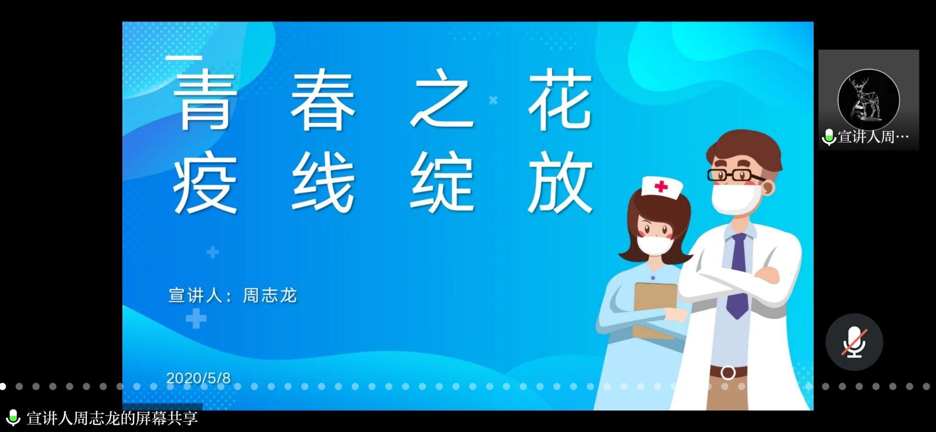 晚7:30,在悠揚(yáng)的校歌中,此次的宣講活動(dòng)正式拉開了帷幕。活動(dòng)伊始,主持人介紹了本次活動(dòng)的流程,并在播放了一段抗疫短片之后依次邀請(qǐng)宣講員進(jìn)行宣講。八名宣講員都來自化學(xué)化工學(xué)院的抗疫志愿隊(duì)伍,在活躍的氛圍中,他們分享了自己在當(dāng)志愿者期間的工作,克服困難的經(jīng)歷,和疫情期間那些令人印象深刻的人或事,闡述了自己成為志愿者的初心,并分享了在成為志愿者后的感受等等。在線上參與活動(dòng)的團(tuán)員青年們都為之深深感觸,覺得受益匪淺。最后,在一片積極歡快的氣氛中,本次宣講活動(dòng)圓滿結(jié)束。