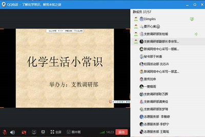 人類的生活能夠不斷提高和改善,化學發(fā)揮著重要的作用,我們的日常生活也與化學息息相關。為提高同學們對化學的關注,增加對學習生活中化學常識技巧的渴望,濟南大學心連心愛心社于5月17日19:00通過線上QQ屏幕分享的形式舉辦了主題為“了解化學常識,解答未知之謎”活動,心連心愛心社部分成員參加了此次活動。
