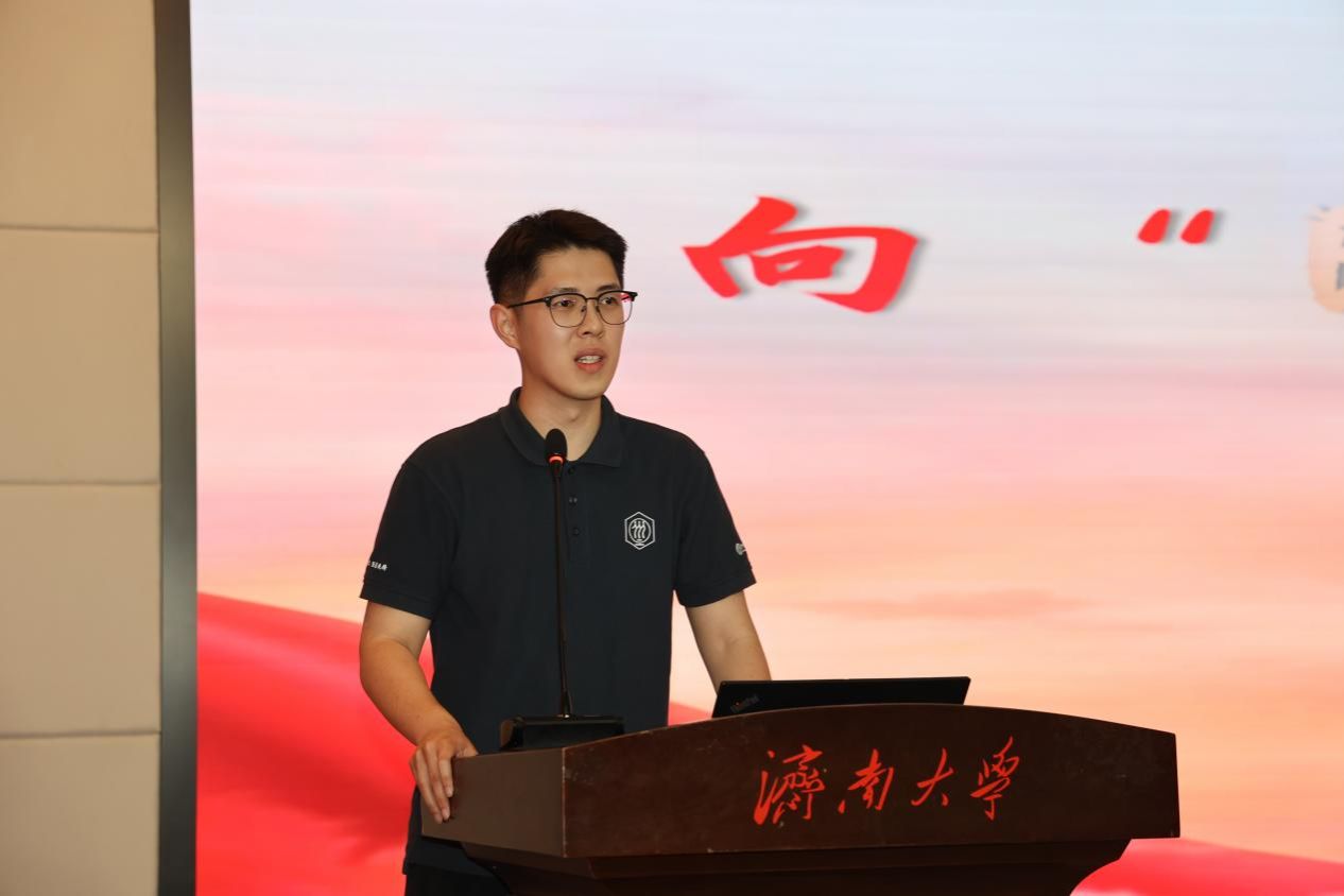 化學(xué)化工學(xué)院院長(zhǎng)陳國(guó)柱致辭。他指出,學(xué)院在學(xué)科建設(shè)、人才培養(yǎng)、科研創(chuàng)新等領(lǐng)域持續(xù)突破,“三階段六時(shí)期”學(xué)涯規(guī)劃體系日益完善,“四學(xué)促四翼”學(xué)風(fēng)建設(shè)模式縱深推進(jìn),形成了“榜樣領(lǐng)航、全員奮進(jìn)”的良好育人生態(tài)。正是這些閃耀的個(gè)體與集體,共同編織成學(xué)院發(fā)展的璀璨星河,讓濟(jì)大精神在傳承中煥發(fā)光彩。