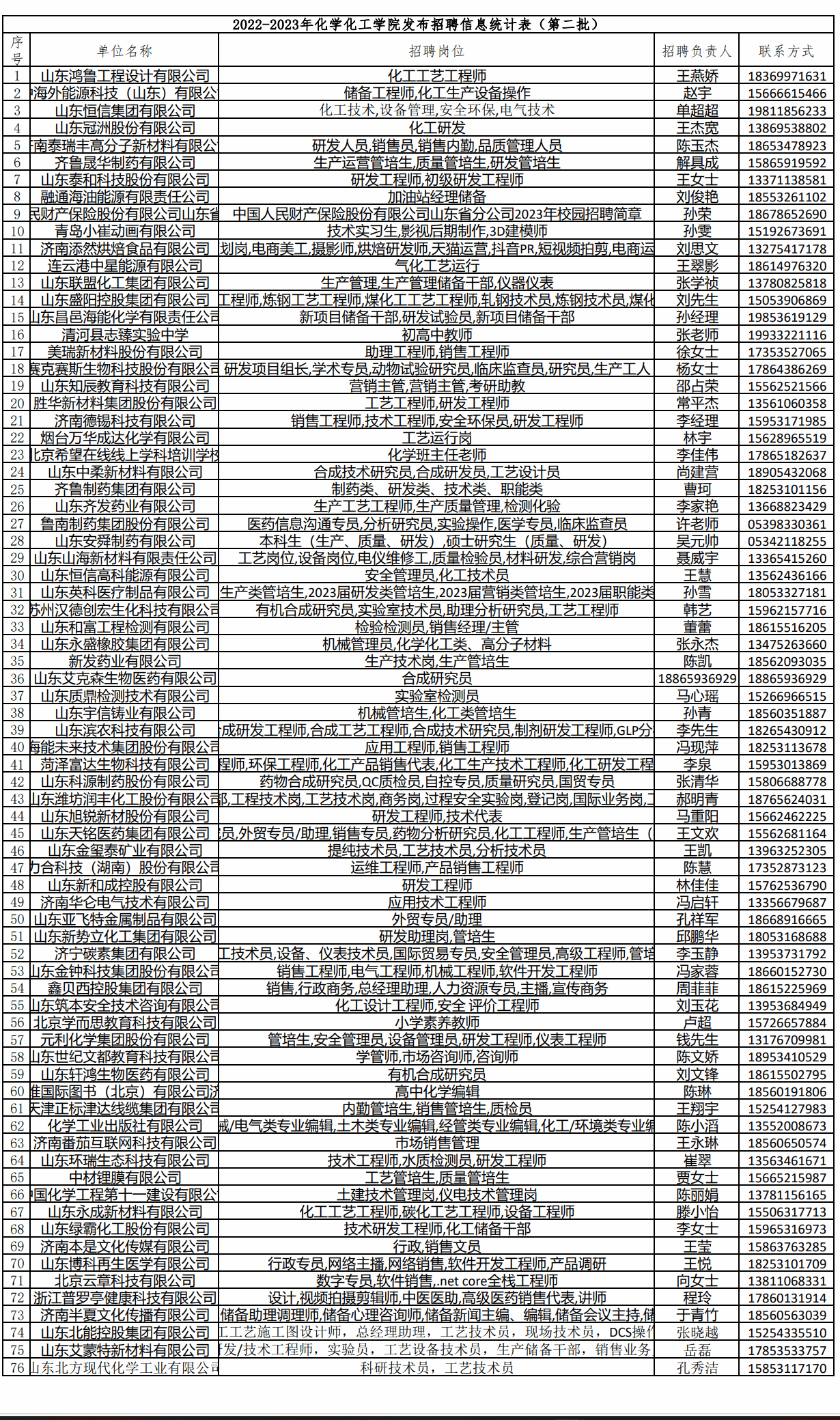 2022-2023年化學(xué)化工學(xué)院發(fā)布招聘信息統(tǒng)計表(第二批)