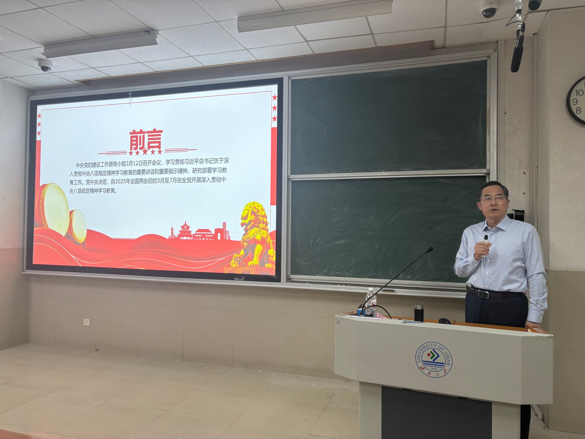 賀銘以《深入貫徹中央八項(xiàng)規(guī)定精神學(xué)習(xí)教育》為主題,解讀了中央八項(xiàng)規(guī)定精神內(nèi)涵與青年學(xué)生踐行路徑。他結(jié)合黨的百年奮斗歷程,系統(tǒng)闡釋了中央八項(xiàng)規(guī)定的制定背景、核心要義及深遠(yuǎn)意義。立足高校實(shí)際和青年特點(diǎn),結(jié)合近年來高校系統(tǒng)違反中央八項(xiàng)規(guī)定的典型案例,通過詳實(shí)的案例和數(shù)據(jù),深入剖析“四風(fēng)”問題的隱形變異表現(xiàn),并強(qiáng)調(diào)青年學(xué)生尤其要在科研誠信、學(xué)風(fēng)建設(shè)、社會實(shí)踐、網(wǎng)絡(luò)言行等方面筑牢底線意識。最后他提出三點(diǎn)希望:一是要明大德、守公德、嚴(yán)私德,以黨的紀(jì)律為鏡鑒,爭做崇廉尚潔的“表率者”;二是要勤學(xué)善思、知行合一,將八項(xiàng)規(guī)定精神貫穿于學(xué)術(shù)科研、志愿服務(wù)和日常生活中,當(dāng)好優(yōu)良作風(fēng)的“傳承者”;三是要心懷“國之大者”,用實(shí)際行動踐行“請黨放心,強(qiáng)國有我”的青春誓言,在服務(wù)國家重大戰(zhàn)略需求中彰顯濟(jì)大化院青年的責(zé)任擔(dān)當(dāng)。