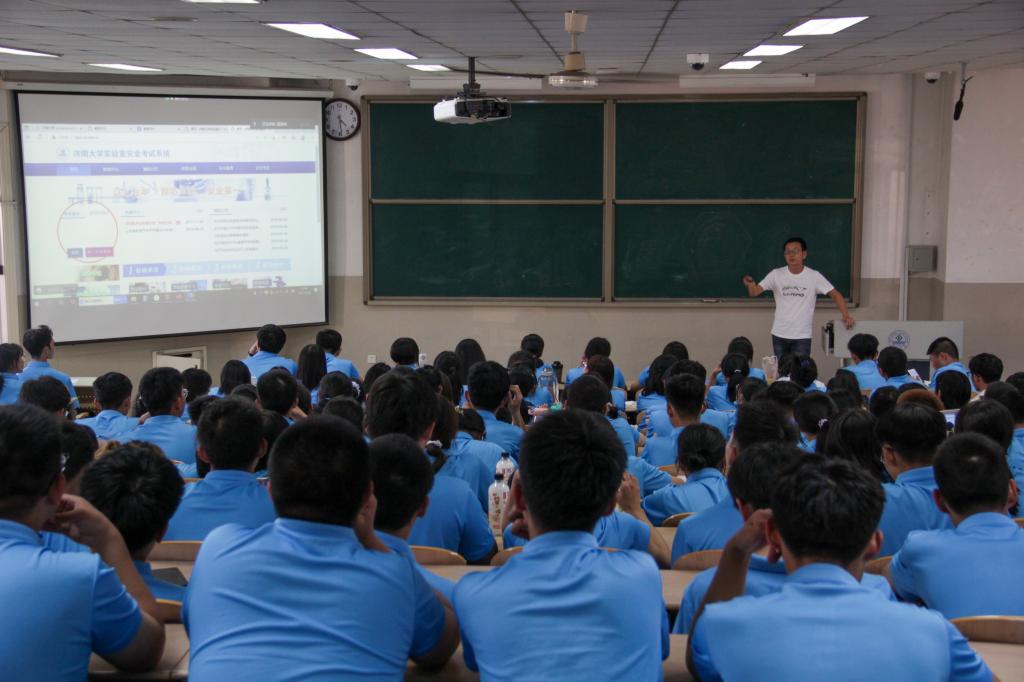 濟(jì)南大學(xué)應(yīng)用化學(xué)科普教育基地始終把“安全”工作放在各項(xiàng)工作的首位,把安全教育與培訓(xùn)工作作為科普活動(dòng)的重要組成部分,每年9月,舉行新生入學(xué)安全教育與培訓(xùn),采取教師講座、現(xiàn)場(chǎng)演示、線上考試等方式,對(duì)新入校的本科生和研究生進(jìn)行全面的實(shí)驗(yàn)室安全和急救知識(shí)普及。